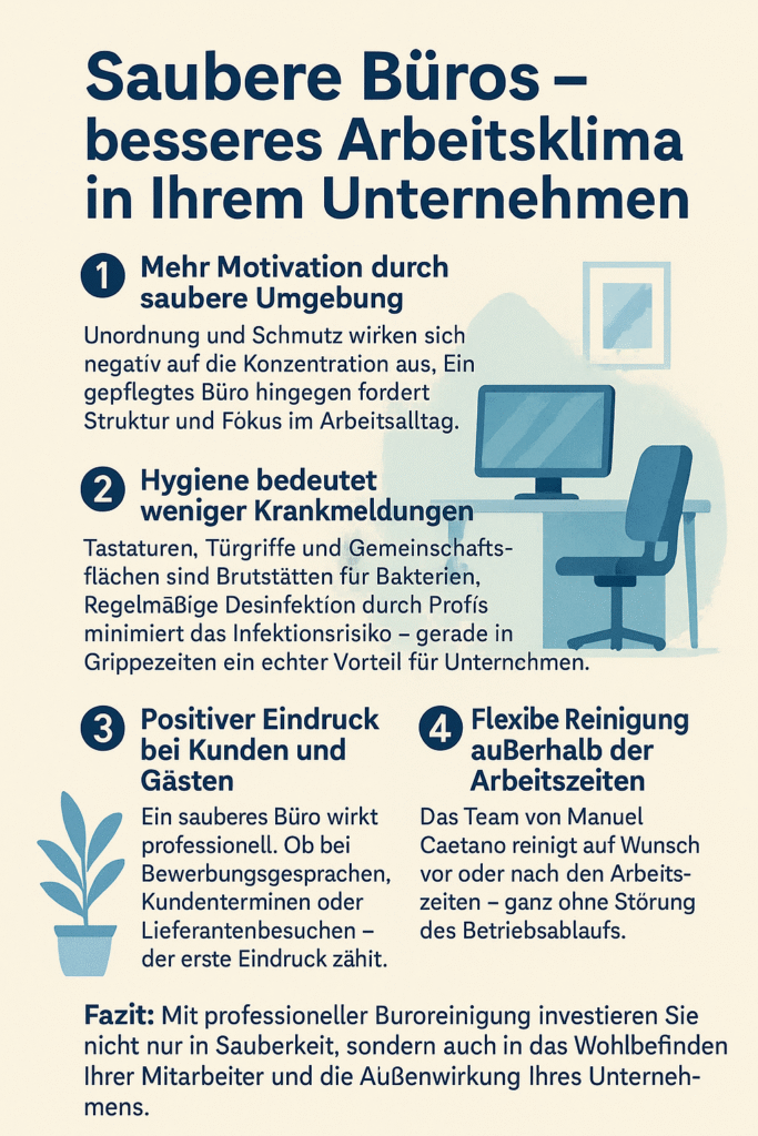 In vielen Haushalten und Unternehmen in Hamburg wird die Reinigung oft nebenbei oder intern erledigt. Doch eine professionelle Reinigungsfirma wie Manuel Caetano bietet nicht nur saubere Ergebnisse, sondern spart langfristig auch bares Geld.